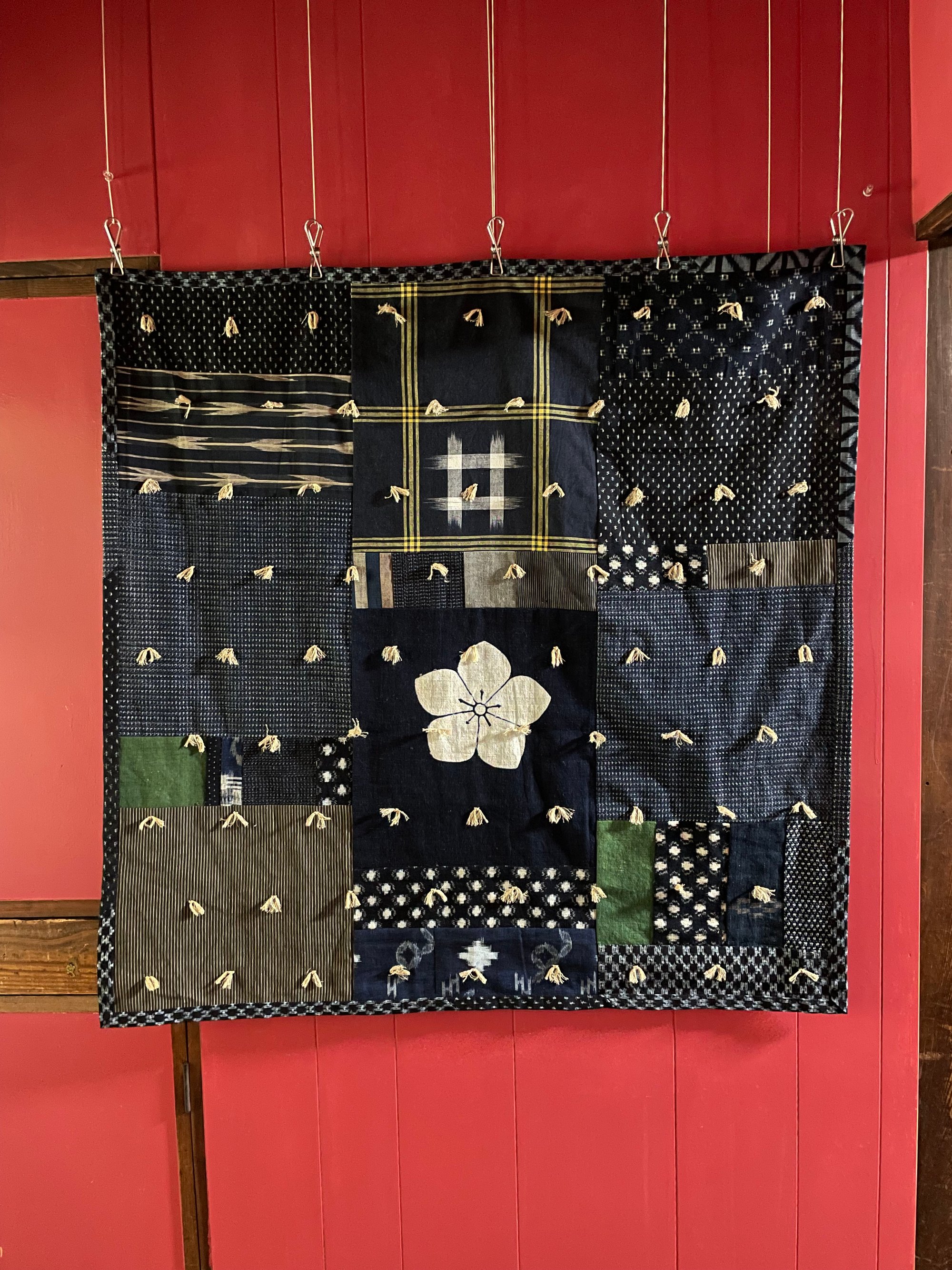 Boro Blanket with white cotton tassels